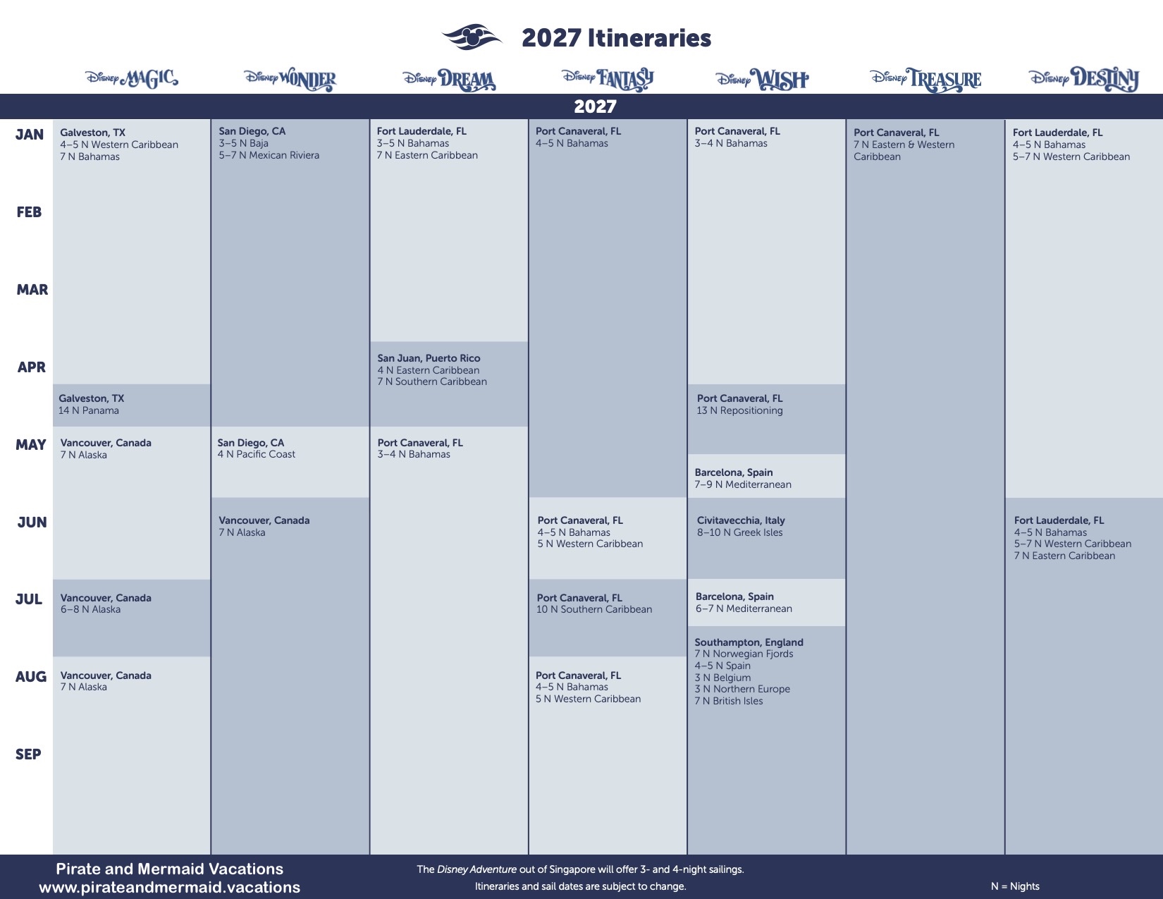 Disney Cruise Line Has Announced Their Summer 2027 Itineraries